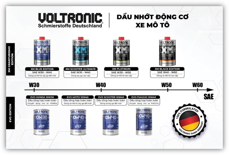 Nhớt Voltronic là lựa chọn lý tưởng cho các dòng xe hiện đại và động cơ hiệu suất cao, cùng tham khảo một số sản phẩm nhớt tổng hợp hoàn toàn sau:
