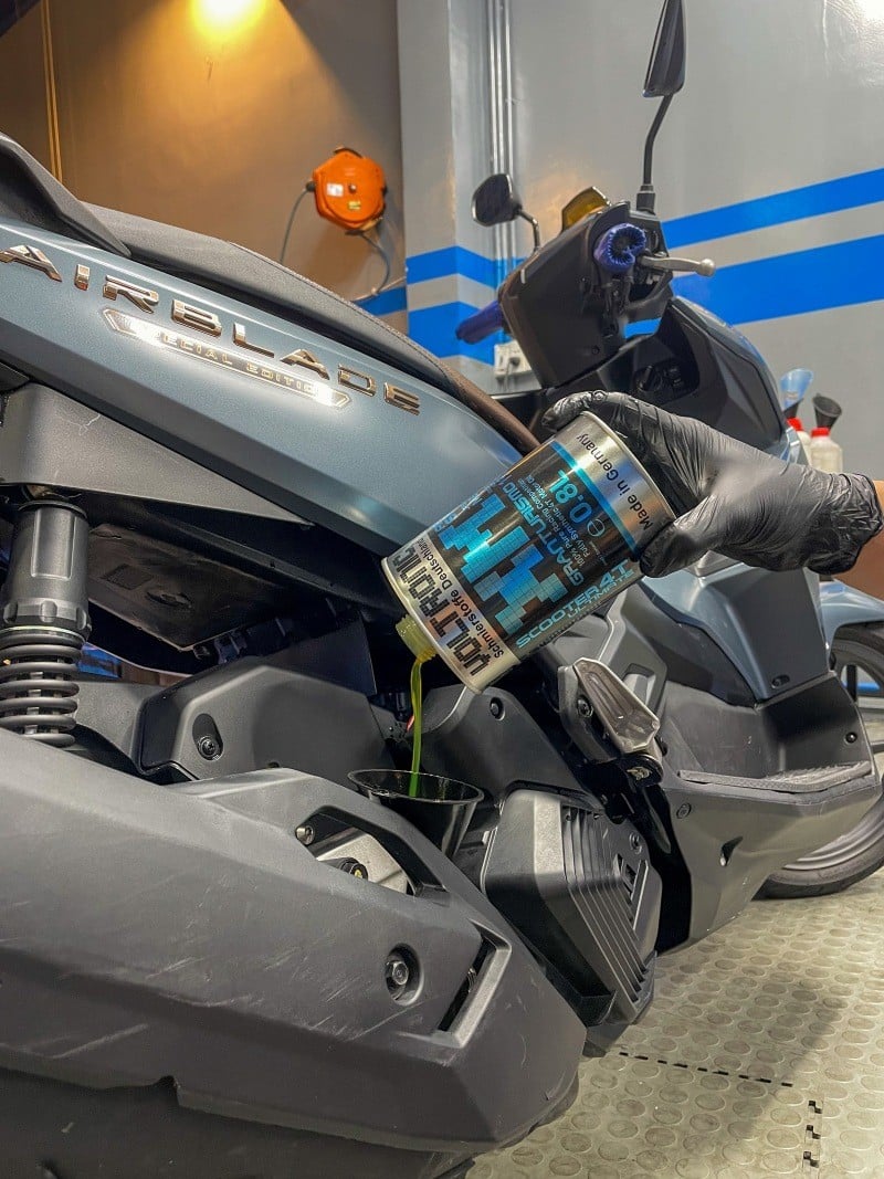 Đối với người dùng xe tay ga, ngoài nhớt máy, nên thay nhớt hộp số (nhớt láp) sau 3 lần thay nhớt máy giúp hệ truyền động luôn hoạt động trơn tru.