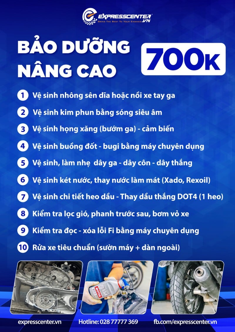 Combo bảo dưỡng nâng cao 10 bước cho xe máy tại Express Center